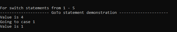 - Console.WriteLine("--------------------- GoTo statement demonstration ---------------------");
