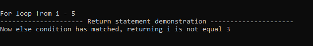 - Console.WriteLine("--------------------- Return statement demonstration ---------------------");