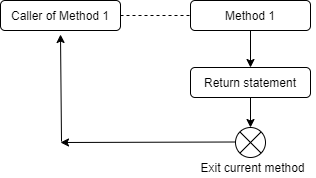 - After the occurance of return statement, it terminates method's execution and passes control to the calling method.