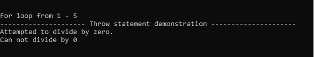 - Console.WriteLine("--------------------- Throw statement demonstration ---------------------");