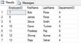 -                 new Employee { EmployeeID = 13, FirstName = "Raja", LastName = "Sekar", DepartmentID = 7 });