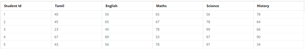 We mapped the Student Id in both grids to display the mark list of each student. Based on the data source of both grids, the result will be generated.