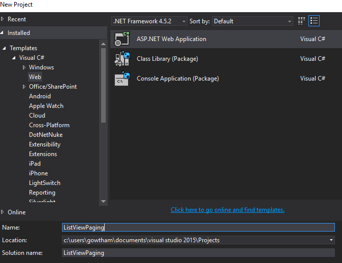 1.Creating a Web API application using an installed web template in Visual Studio as in the following figures,