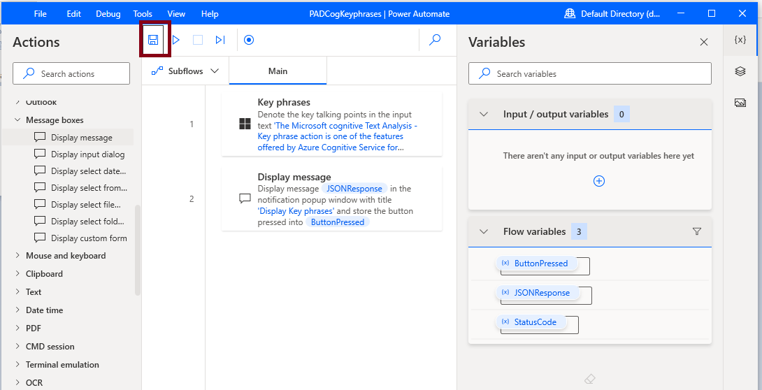 Now, Save the PADCogKeyPhrases Desktop Flow,