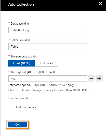 You will learn in this section, how to create a new database and collection in Data Explorer using Azure portal.