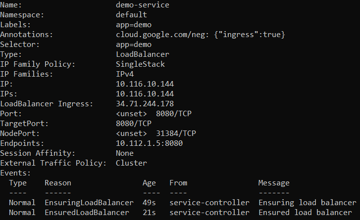 kubectl expose deployment demo --type=LoadBalancer --name=demo-service --port=8080