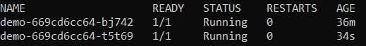 On our cluster only 1 pod is running so far, let’s scale it to two.
