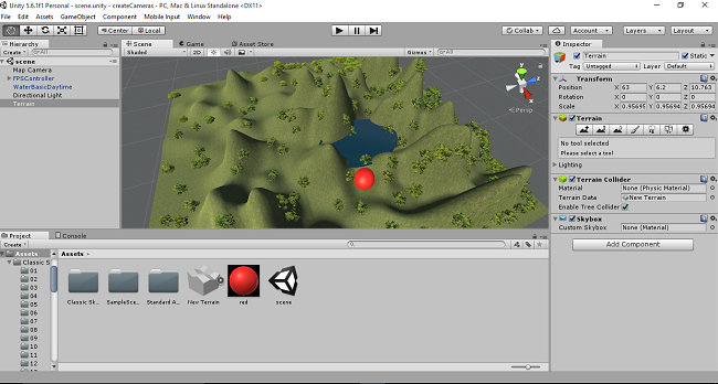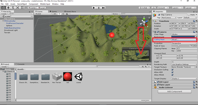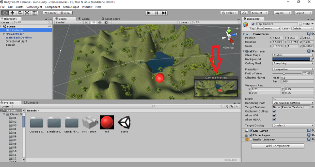 First, you have to open the Unity project. Create terrain, trees and water. Add the FPS control and create PIP Map Effect in Unity.