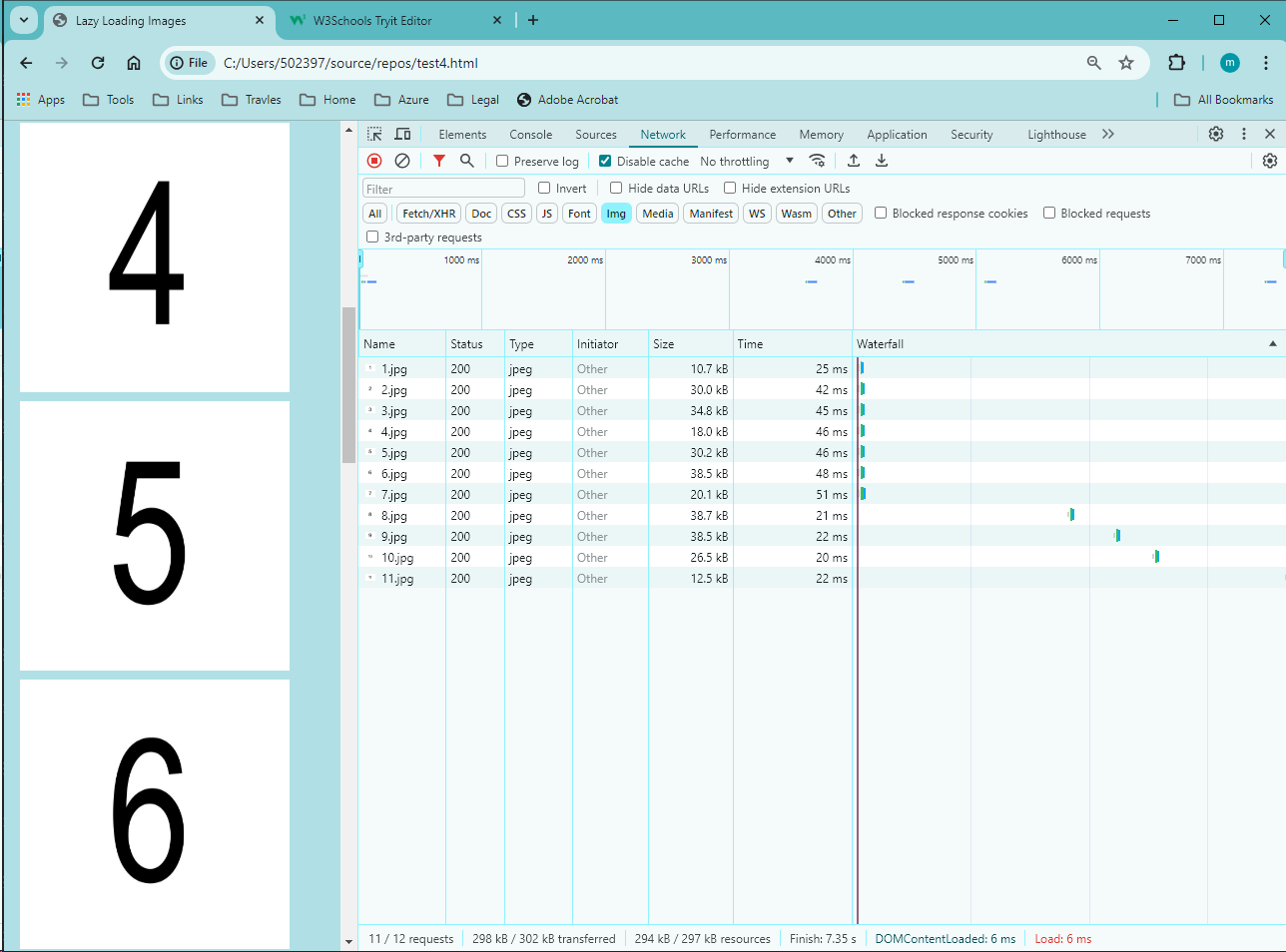 Scroll down to show Photo 4,5,6, then we can see the Photo from 8 to 11 are loaded in DevTools: