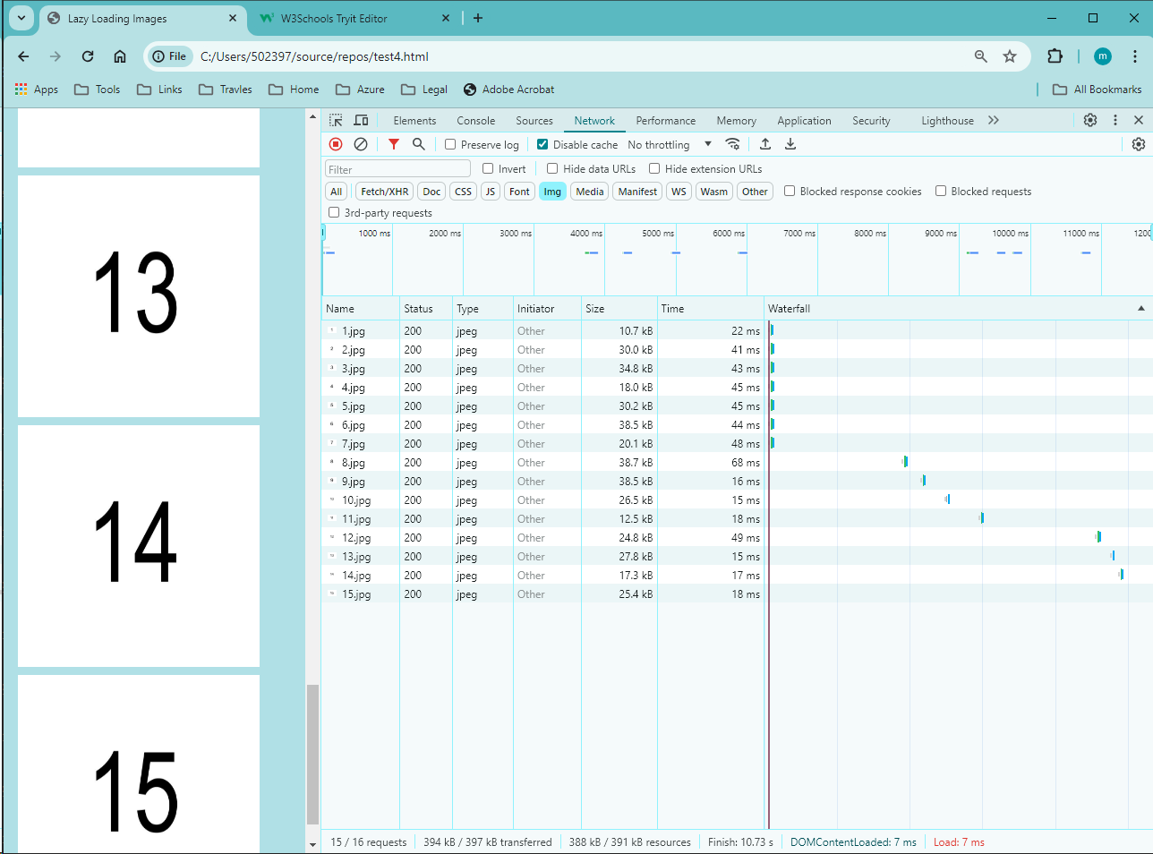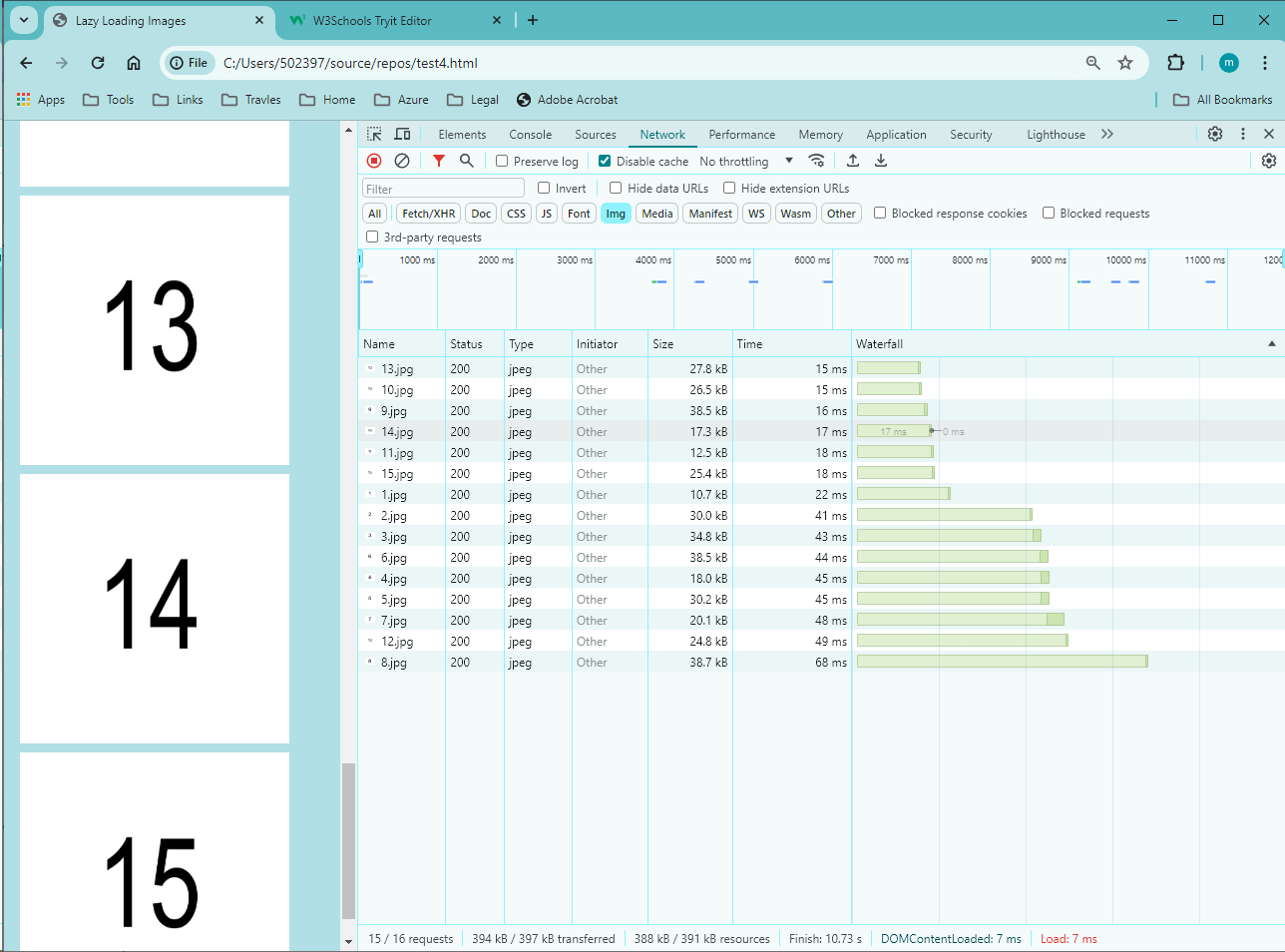 Till viewing the Photo 13, 14, 15, all photos are loaded in DevTools: