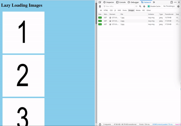As a web standard, since 2020, major web browsers have enabled native handling of lazy loading by default [wiki]. This allows lazy loading to be incorporated into a webpage by adding HTML attributes.