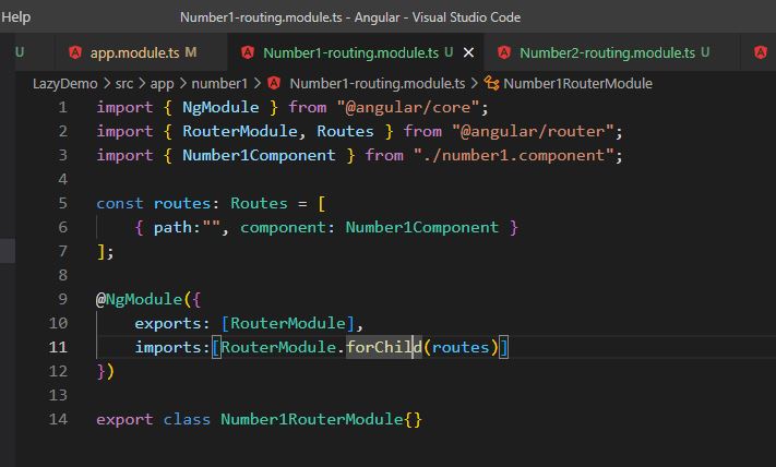Similarly add the codes in Number2-routing.module.ts and Number3-routing.module.ts.