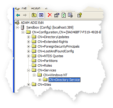 The setting we are looking for is in the object named CN=Directory Service,CN=Windows NT,CN=Services,CN=Configuration,CN={Configuration Naming Context GUID}. The exact name will vary between ADAM instances, but it's always in the same location.