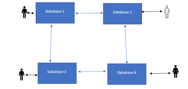 What if, the participants cannot trust the centralized database owner and need high security and trust for their data as well as none of the companies want to take ownership and responsibility of the centralized database. In this case, we need distributed database.