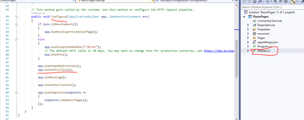 The second condition is it should be added to the HTTP middleware pipeline. Click on the startup.cs file and select configure method to see the pipeline.