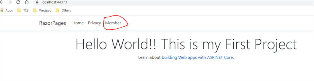 Here we have added a new <li> for member and set the asp-page value as “\member”.