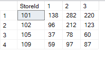 Here we create a table called StoreTbl which has three columns, StoreId : The ID of Store, WeekNumber : Week number of collection, and Income : Total income of that week.