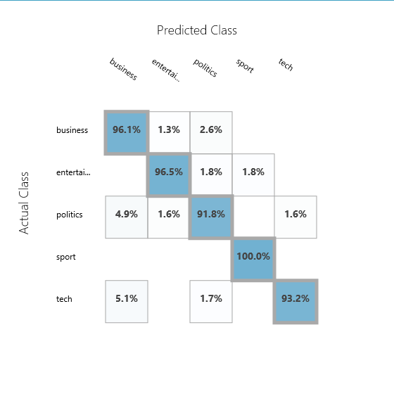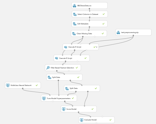 The Azure ML Studio is incredibly powerful, and dramatically lowers the barrier of entry to Data Science and Machine Learning. It saves you from having to worry about setting up the production environment and effectively gives you' Data Science' and 'Machine Learning' as a service. The following screenshot shows an example from the studio where Azure ML is being used to automatically classify the news articles from the BBC website home page. You can read more