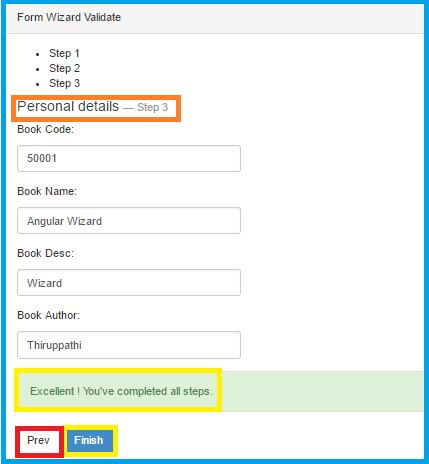 Step 2Once you click "Next" button.you have completed step 1. it will move the step 2. In this step i have used ng-pattern="/^[0-9]+$/" & required key word using for validation .in html form element.