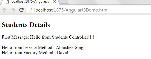 -     $scope.Name = studentService.displayName("Abhishek Singh");