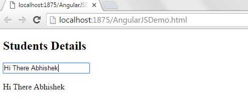 Above message is the model which has got bound using ng-model directive which makes the model get updated once view is changed. This is a very nice feature of angular which makes it a good binding framework to keep the view and model in sync.