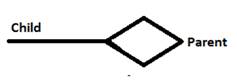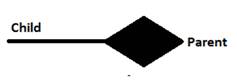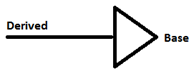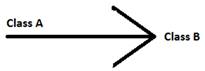 In UML, it’s displayed as an unfilled diamond and a solid line.