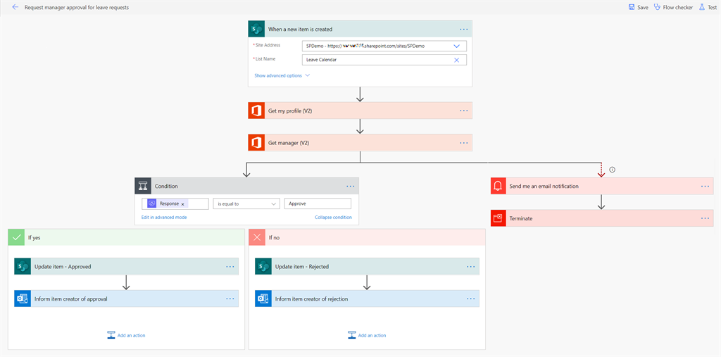 As the last part to leave approval, we will build a power automate flow to send the leave request for manager approval.