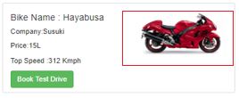 You can refer to my HTML template below. I have created 2 rows and displayed the bike image inside the first row and the other bike details are displayed in the second row.