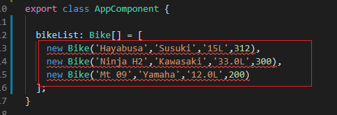 Our first work item is completed. We have modified our model and updated the bike array in the app component accordingly.