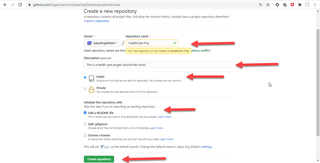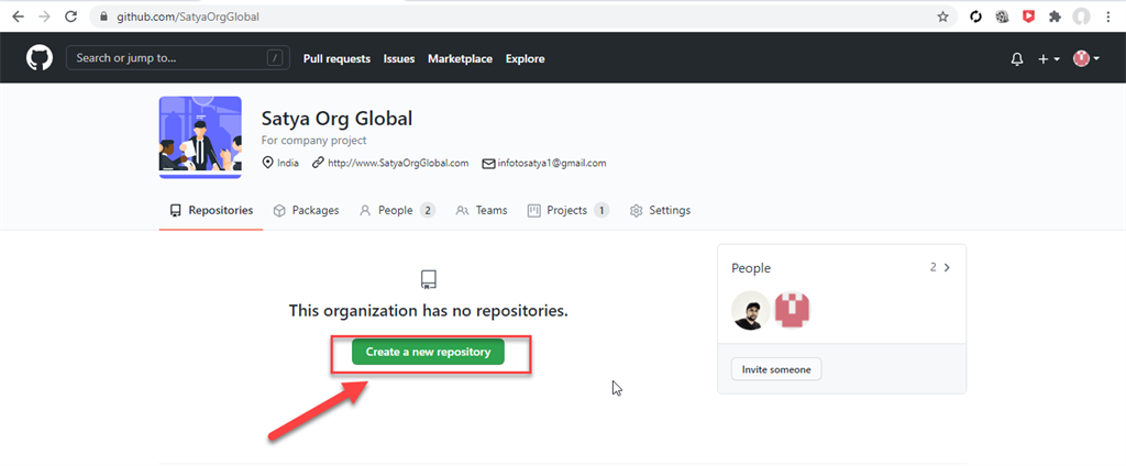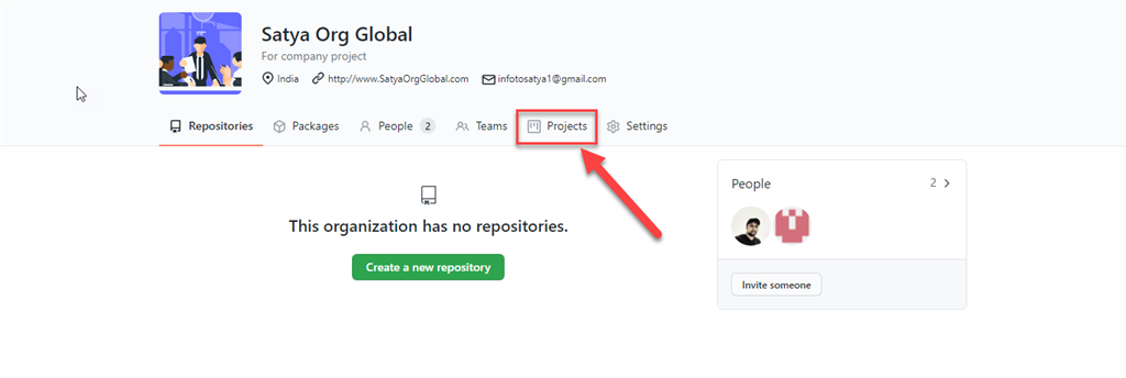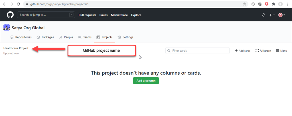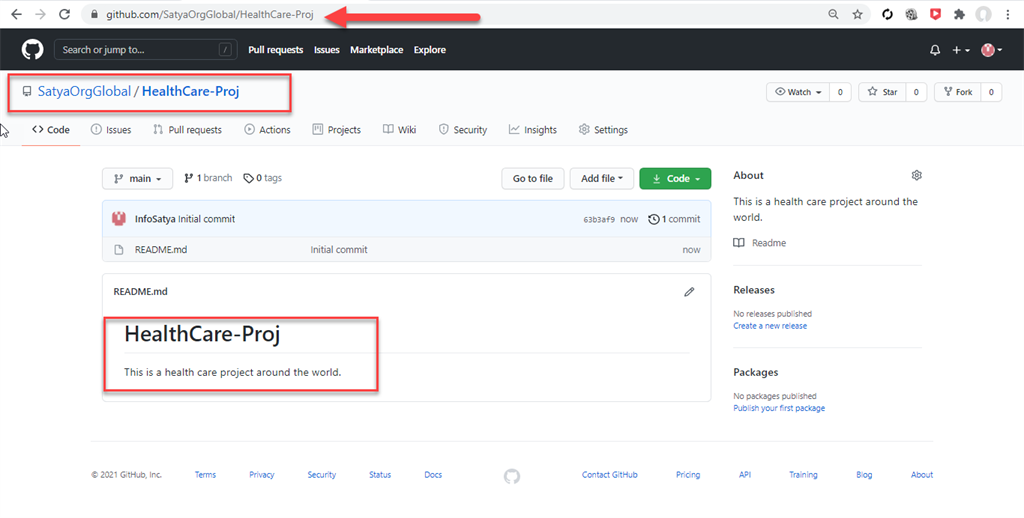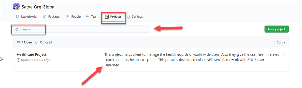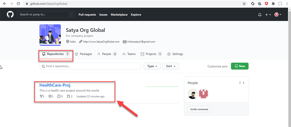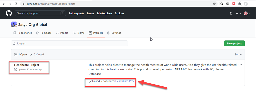 Now we can see the newly created repo under the project of our GitHub organization as shown below.