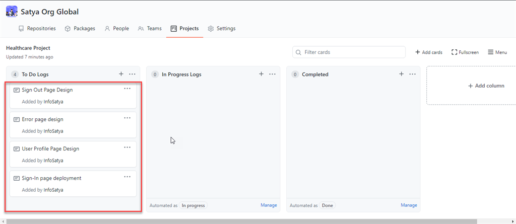 Basically, the project board on GitHub helps you to organize and manage your work. We can create Project Board for specific work that is a roadmap or even a release checklist.
