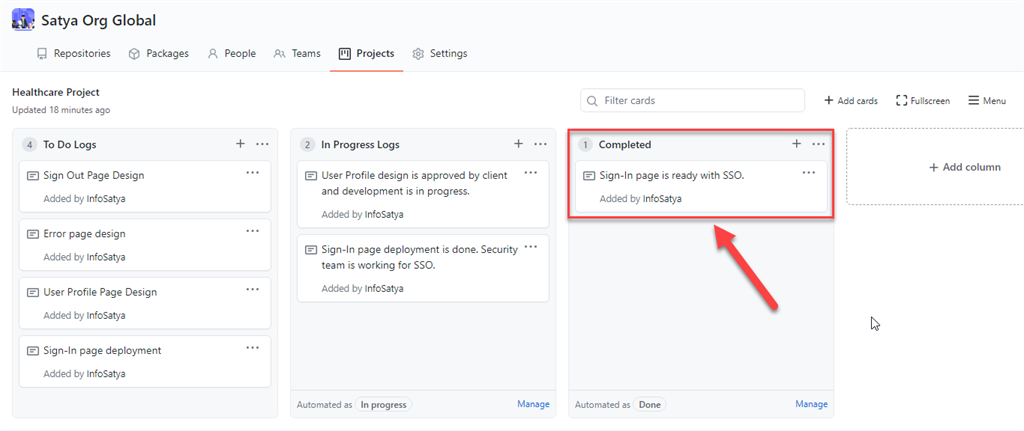 If any other tasks or items are completed then it goes to the Completed column as mentioned below.