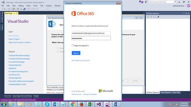 - It will ask for credentials of Office 365. Provide the Username and Password.
