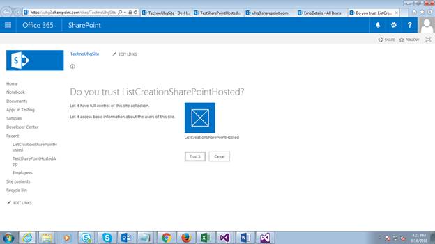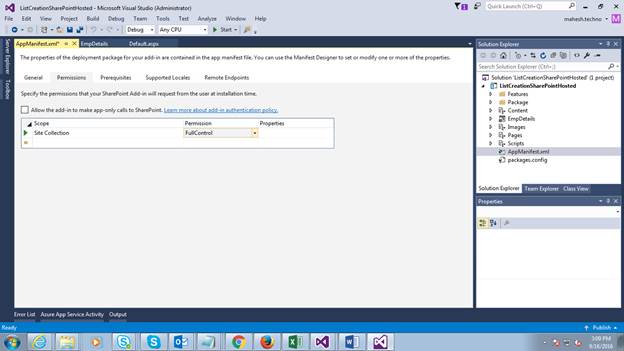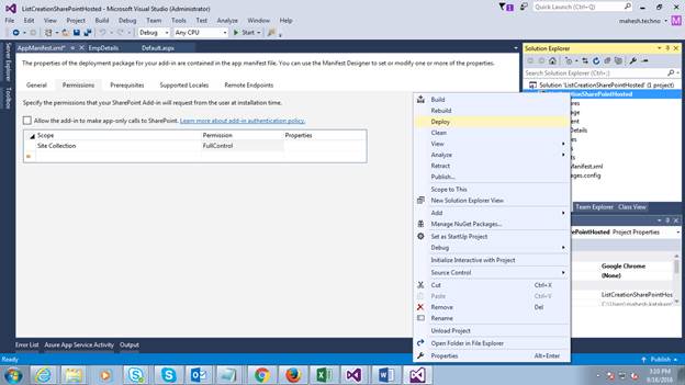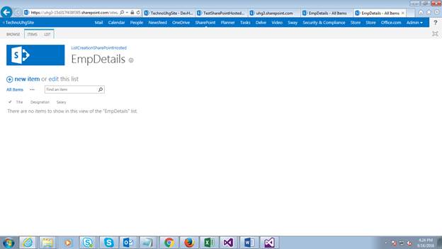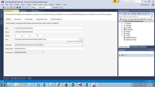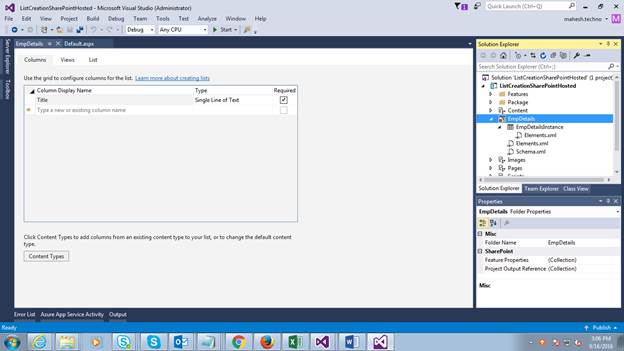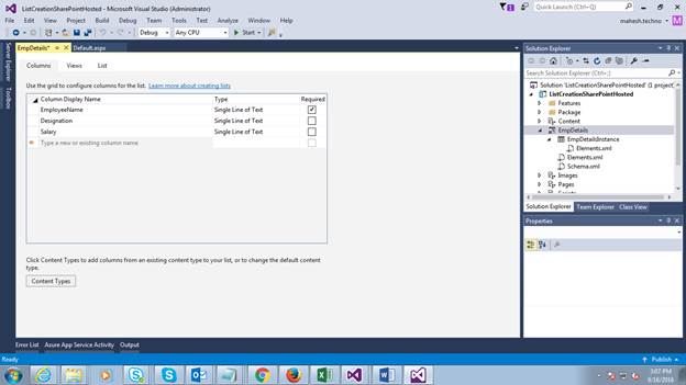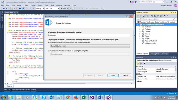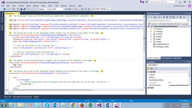 In this example, we will learn how to create list and columns through SharePoint Hosted Apps.