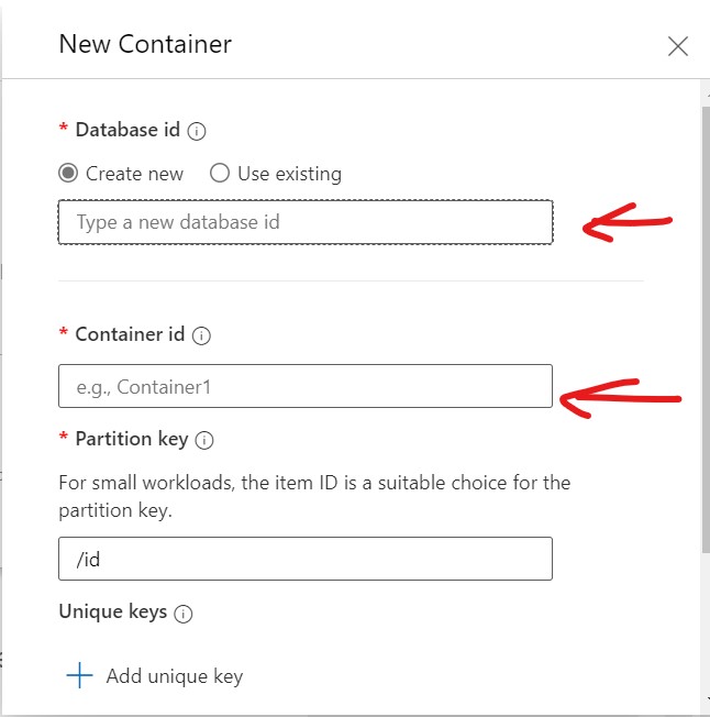 Step 3: Add a new Container (table) to Cosmos DB