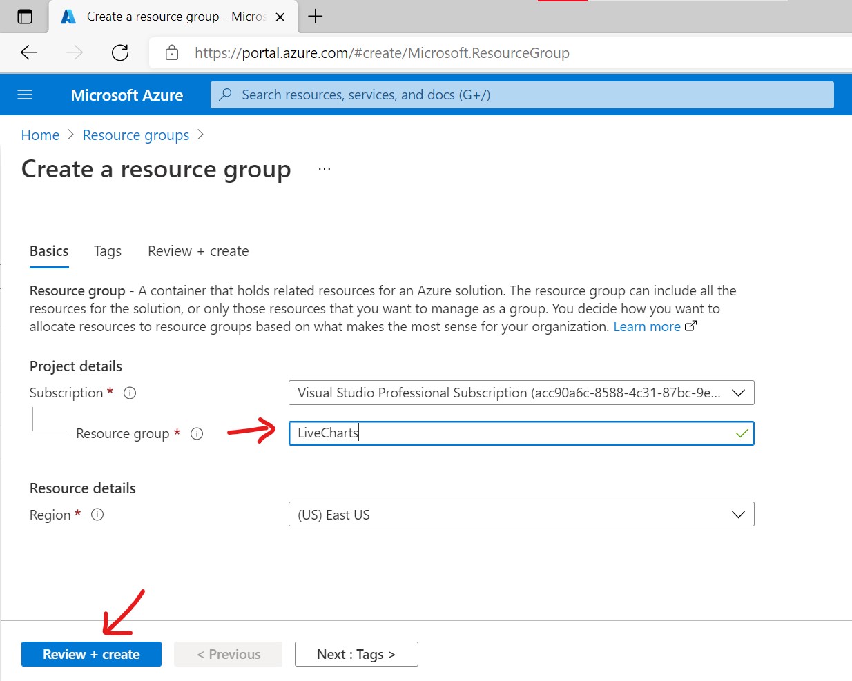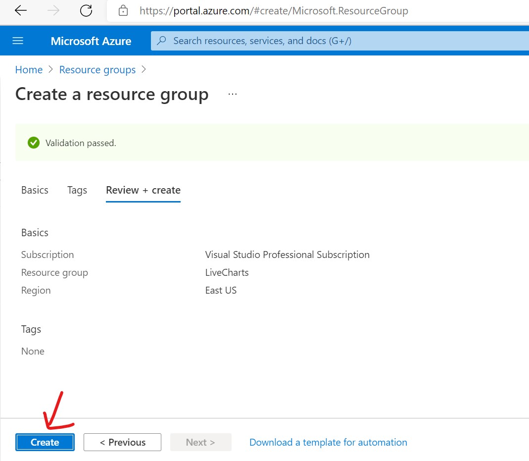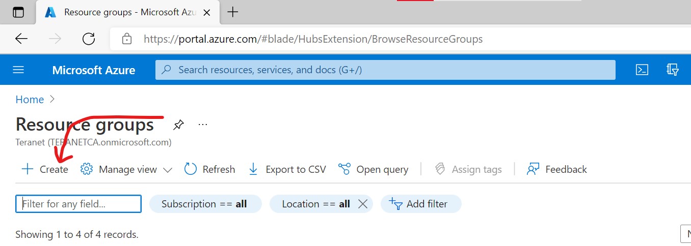 Click on Create button to create a new resource group