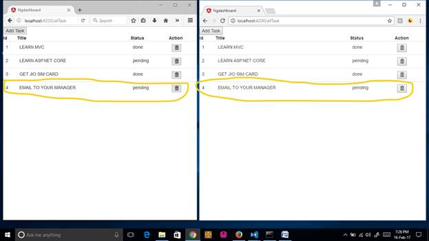 In this tutorial, I will show you how to pull the data from back-end periodically to keep your UI up to date. In this tutorial, I will mainly focus on Observable, which is imported from rxjs/Rx. In this tutorial, I will use to-do Application, which is created previously to display the new task, add the new task, update the task and delete the task. You can find more about it here. In this tutorial, I am using the same project, which is available in GitHub.