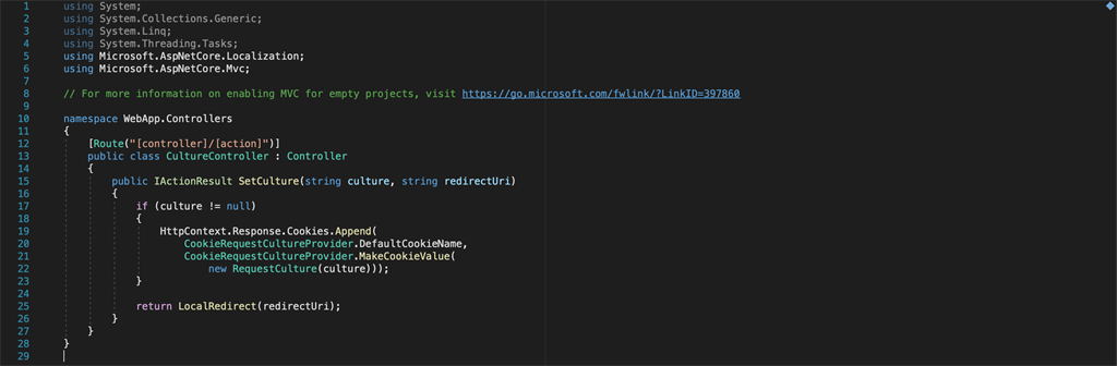 - public IActionResult SetCulture(string culture, string redirectUri)