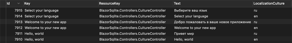 In this article, I will show how to use SQLite localization in a Blazor server-side application. We will have two cultures ("en" and "ru").
