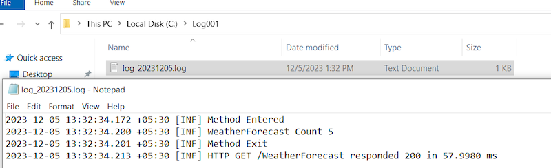 Now, to test the logging functionality, run the application and inspect the specified path. Refer to the image below for guidance.