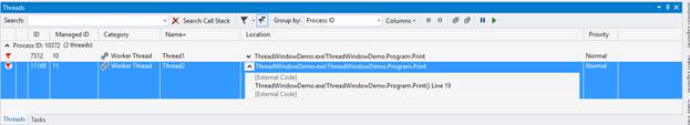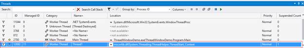 Let’s look at the columns, which are helpful in Threads window,