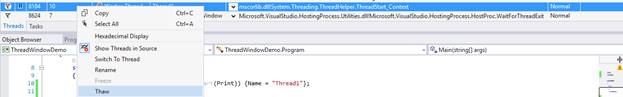 Similarly, we can resume\un-freeze a thread by clicking on Thaw.