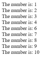 document.write("The number is :" +i +"<br/>");