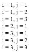 document.write("i = " + i + ", j = " + j + "<br>");