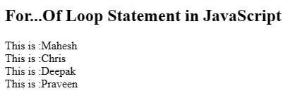 <h2>For...Of Loop Statement in JavaScript</h2>