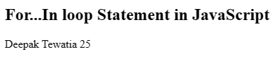 <h2>For...In loop Statement in JavaScript</h2>