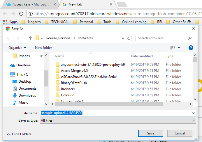 - Run the application and check the storage account’s Blob container where the new upload will be.