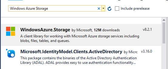 - Install packages like “Windows Azure Storage” to get this going.