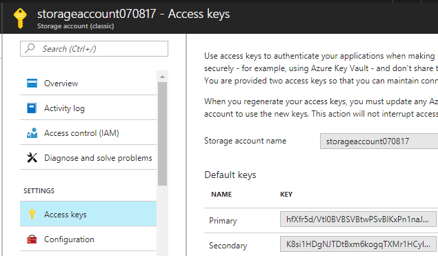 - Write the sample code to store the image into Blob container. For that, first extract the storage account name and the key to access the blob storages.