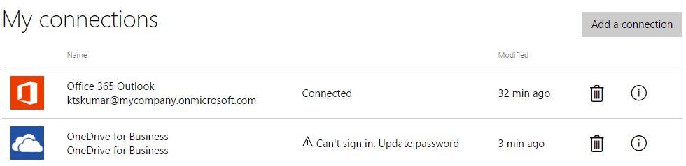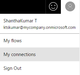 To connect the different services in Microsoft Flow, we should establish the connection to that appropriate service. And the connections can be managed from "My connections page". Below are the steps to manage the connections in Flow.